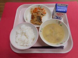 今日は秋を感じさせる「さつまいもごはん」の日です。甘いホクホクとしたさつまいもがご飯の中に散りばめられていました。さつまいもは食物繊維が含まれているので、便秘予防に役立ちます。そして今日のさつまいもは町産を使用しました。