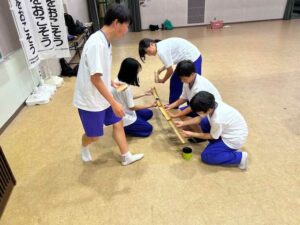 1学年宿泊学習 午後の活動 2025年10月6日 未分類 午後からの活動は、立山ジョイフレンド ~班で協力して楽しもう!~です。 ラインナップとバケッツボール パイプライン マシュマロリバー 新聞紙タワー ブラインドスクエア どのゲームも、みんなで知恵を出し合い、失敗も笑顔で乗り越えながら、楽しんで活動していました。