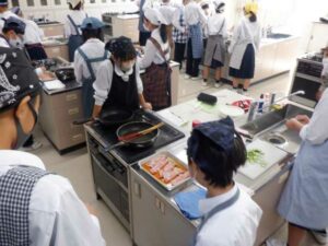 1年生 調理実習 2025年10月30日 未分類 今日、1年生の技術・家庭科(家庭分野)で調理実習を行いました。 メニューは豚の生姜焼きです。 付け合わせに、キュウリを切りました。 みんな手際よく調理することができました。