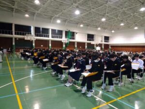 3年生 進学に関する説明会 2025年10月31日 未分類 今日、3年生と3年生の保護者の方を対象に、進学に関する説明会を行いました。 まずは、進路に関する手続き等について説明をしました。保護者の方にも話を聞いていただきました。 その後、いくつかの高校の先生方にも来ていただき、それぞれの高校に関するお話をいただきました。 生徒の皆さんには、このような機会を通して、進路決定に向けて前向きに取り組んでもらえたらと思います。