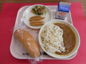 給食室より 11月7日(金)の献立 2025年11月7日 未分類 牛乳、減量コッペパン、きびなごのクリスピー揚げ、かみかみサラダ、ソフト麺のカレーソースかけ 「きびなご」は南日本に生息している魚で、鹿児島県が有名です。鹿児島県の方言できびは「帯」、なごは「小さい魚」という意味です。帯のような模様のある小さな魚から、「きびなご」と名づけられました。小さい魚だけど、コレステロールを減らしたり、血液をサラサラにするDHAやEPAが豊富に含まれています。