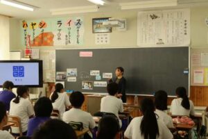 2年生 夢の教室 2025年11月12日 未分類 今日も、2年生では「夢の教室」を行いました。 今日の夢先生は、富山県富山市出身、総合格闘家のSARAMIさんです。 夢先生と一緒に体を動かし、心をほぐしました。 夢先生から、毎日「小さなできた」を積み重ねることで、自分の良さが見つかり、それが自信となって力を発揮することを学びました。