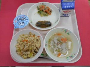 給食室より 11月19日(水)の献立 2025年11月19日 未分類 牛乳、★生姜とさつま芋の炊き込みご飯、さんまのおろし煮、ピーナッツ和え、上市こんこん汁、ヨーグルト 今日は「かみいちの日」献立です。5つ目の採用献立は、「★生姜とさつま芋の炊き込みご飯」です。生姜とさつま芋は町産のものを使用しました。生姜は風味が出るようにせん切りにするのがポイントだそうです。給食では、作業の都合によりみじん切りにして出しました。今日は美味しい炊き込みご飯を食べて心も体も温めましょう。