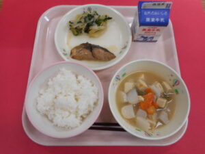 給食室より 12月4日(木)の献立 2025年12月4日 未分類 牛乳、ごはん、あじの照り焼き、生姜びたし、高野豆腐の甘みそ煮 今朝は初雪が降り寒い1日となりました。給食室では今日の献立に使用する野菜を調理員さんが水を使って洗っていました。給食では野菜の洗浄は3つのシンクを使って野菜を洗います。キャベツのように巻き付いているものもばらしてしっかり洗います。虫の付着や傷んでいるところを取り除きながらしっかり洗うことで安全が守られるので、毎日真剣にチェックしながら洗っています。
