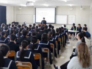 今日は「鶏肉と大豆のカシューナッツがらめ」についてお話します。この献立は、鶏肉に下味をつけてからでんぷんをつけて揚げています。大豆も乾燥大豆を使用しているので、戻してからでんぷんをつけて揚げています。カシューナッツは乾煎りすることで香ばしさを出し、ピーマンは彩りを考え素揚げしています。このように、素材一つ一つを丁寧に仕上げてからタレと一緒に絡めています。絡める時も食中毒防止の観点から、90度以上の温度になるよう絡めているので、大量の水分の少ない食材を90度以上に絡めるには、食材の温度と手早さが重要で、ベテラン調理員さんの経験と技によって作られている献立なのです。