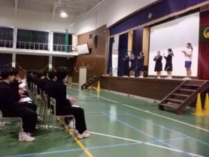 今日は、午後から「卒業を祝う会」を行いました。3年生の先輩方に楽しんでもらおうと、1、2年生は以前からずっと準備をしてきました。