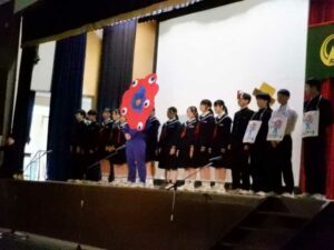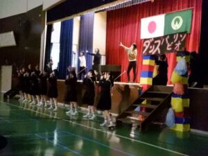 続いて2年生の出し物「上中万博」です。万博のパビリオンを巡る演出です。