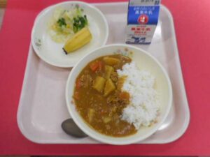 給食室より 4月8日(水)の献立 2026年4月9日 未分類 ごはん、牛乳、カレーライス、コーンサラダ、バナナ 今日から新学期がスタートしました。みなさん、進級おめでとうございます。給食も今日からスタートということで、給食室の調理員さんも朝から腕を振るって給食を作っておられました。今年度も美味しいといってもらえるよう給食室一同、力を合わせて頑張って作ります。