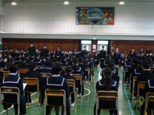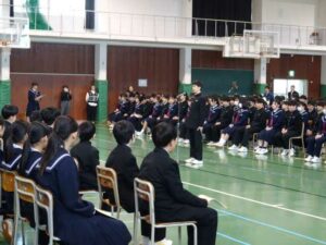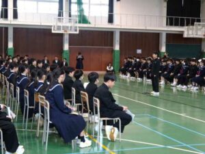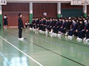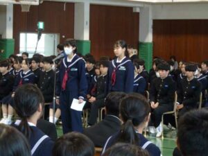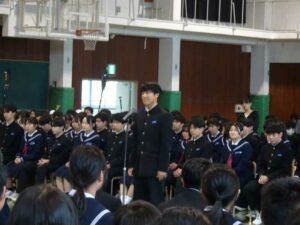 最後に、生徒会長から1年生に「皆でよりよい学校にしてきましょう」という言葉がおくられました。